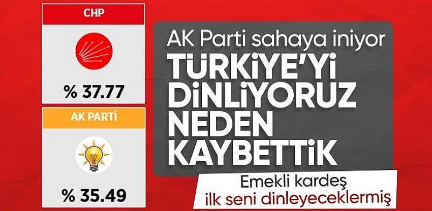 | Yerel seçimlerde istediği sonuçları alamayan AK Parti, 81 ilde sahaya inecek. Oy kayıplarına sebep olan etkenlerin araştırılacağı çalışmada emekliler başta olmak üzere farklı etnik ve sosyal gruplara kulak verilecek. | ||
