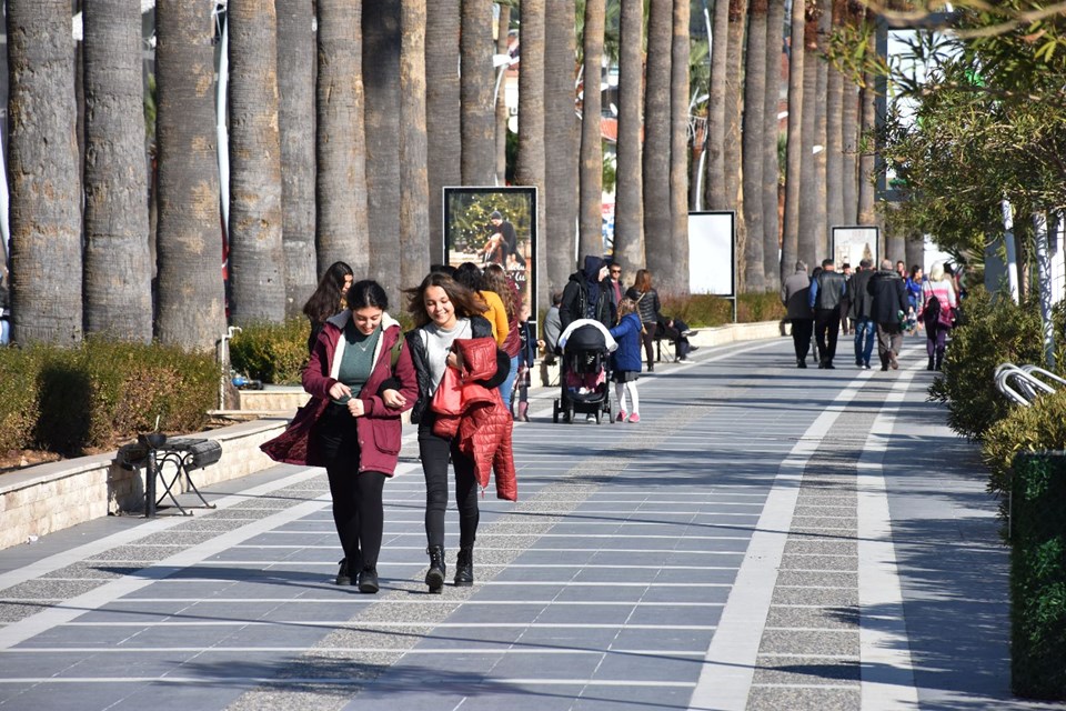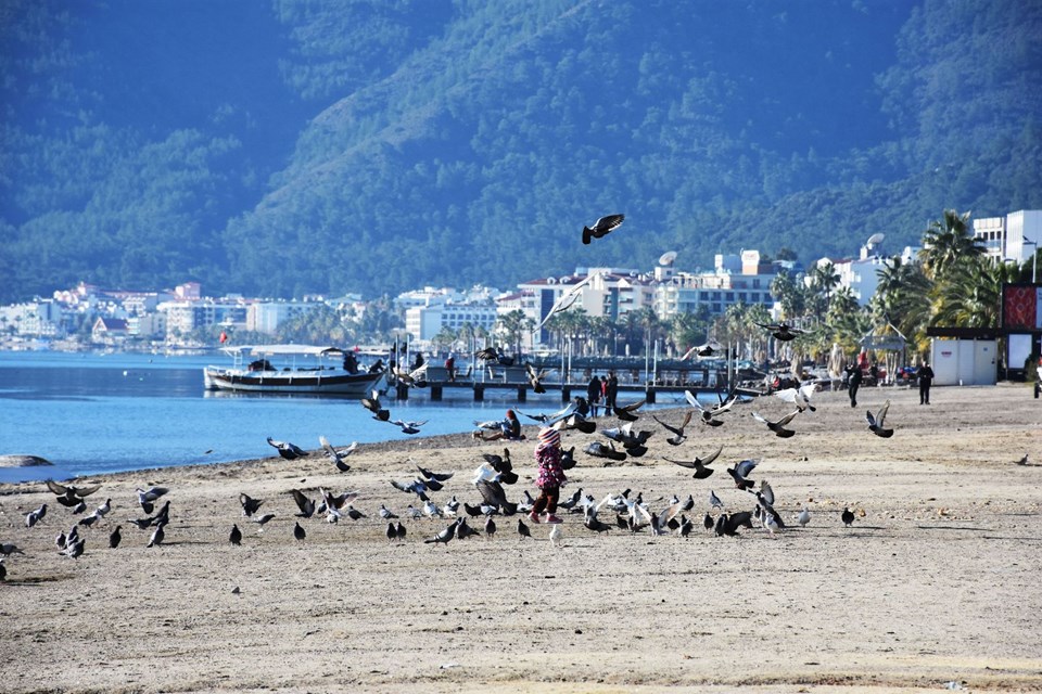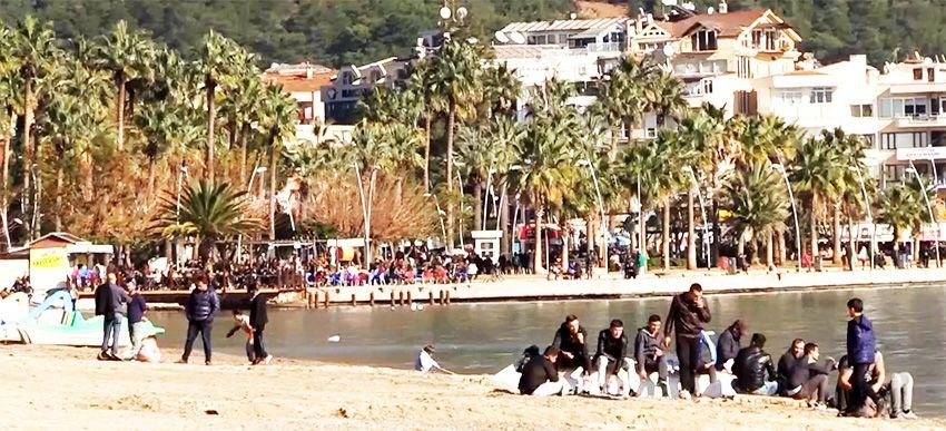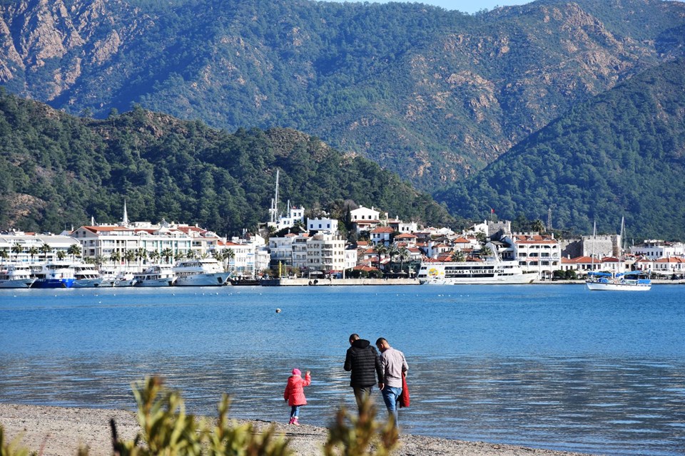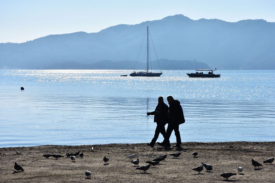 Bodrum Söz/ Hava sıcaklığının 18, deniz suyu sıcaklığının 19 derece ölçüldüğü Marmaris’te vatandaşlar, yat limanı, Kordon Caddesi, halk plajı, İçmeler plajı ile Uzunyalı sahilinde yürüyüş yaptı.