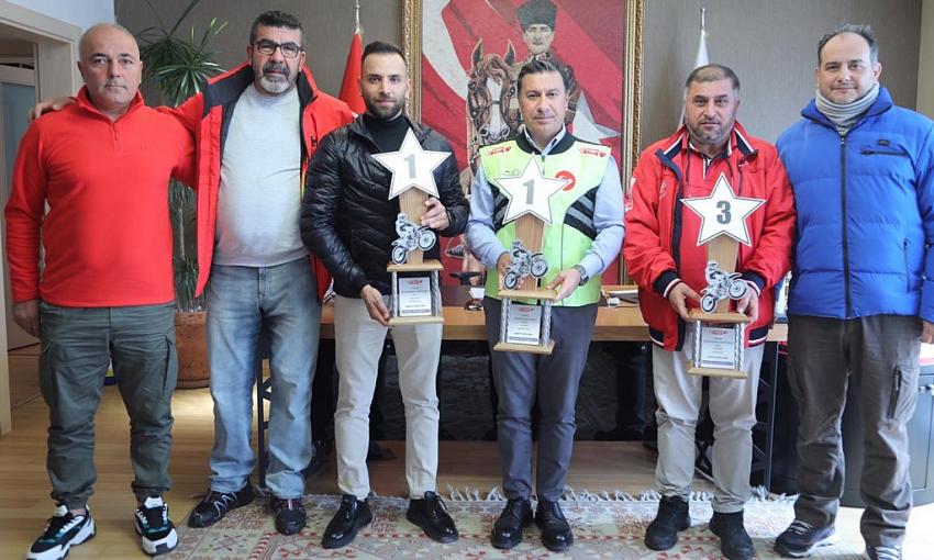 2022 sezonu Enduro yarışlarında 1.likler elde eden sporcu Aykut Kızıltan, Bodrum Belediye Başkanı Ahmet Aras’ı makamında ziyaret etti